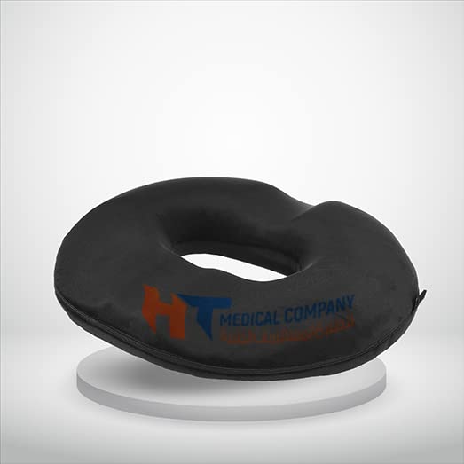HT - مقعد طبي للوقيه من البواسير عند الجلوس لفترات طويله والحصول عليراحه مثاليه إتش تى الميموري الالماني عالي الجوده مع غطاء القطيفه ناعمه الملمس القابل للغسل لون أسود رغوة الذاكرة