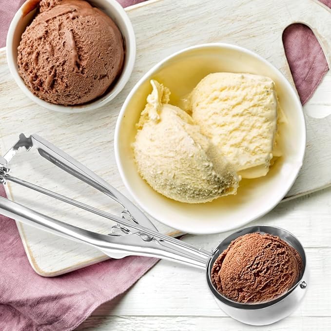 Generic - مغرفة ايس كريم بزر مصنوعة من الستانلس ستيل من الدرجة الغذائية باحجام مختلفة بلون فضى خمات عاليه الجوده عرض قطعتين