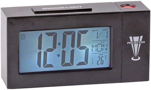 Generic - منبه رقمي متعدد الوظائف بشاشة ال سي دي مع التحكم الصوتي لعرض الوقت والتقويم ودرجة الحرارة، أسود
