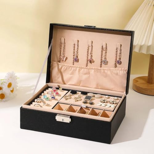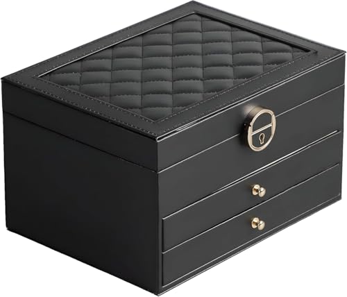 Generic - منظم اكسسوارات جلدي كبير – صندوق تخزين للمجوهرات مع أقسام لتنظيم السلاسل والخواتم والحلق والساعات – تصميم أنيق لطاولة الزينة
