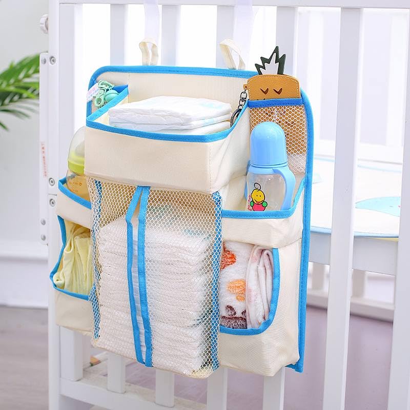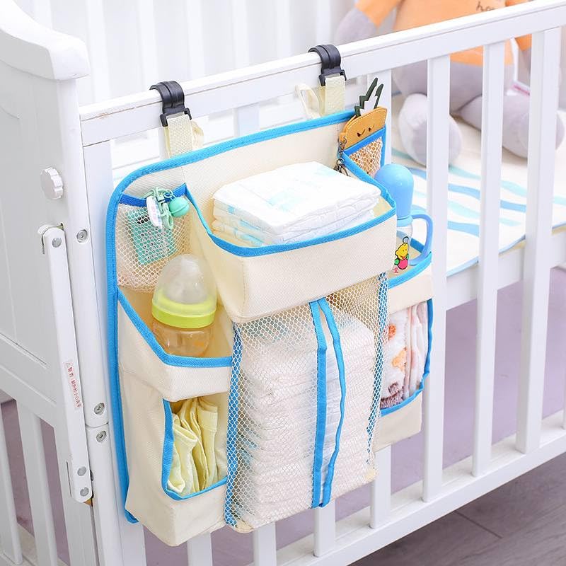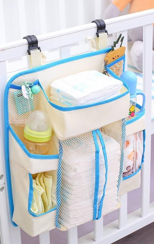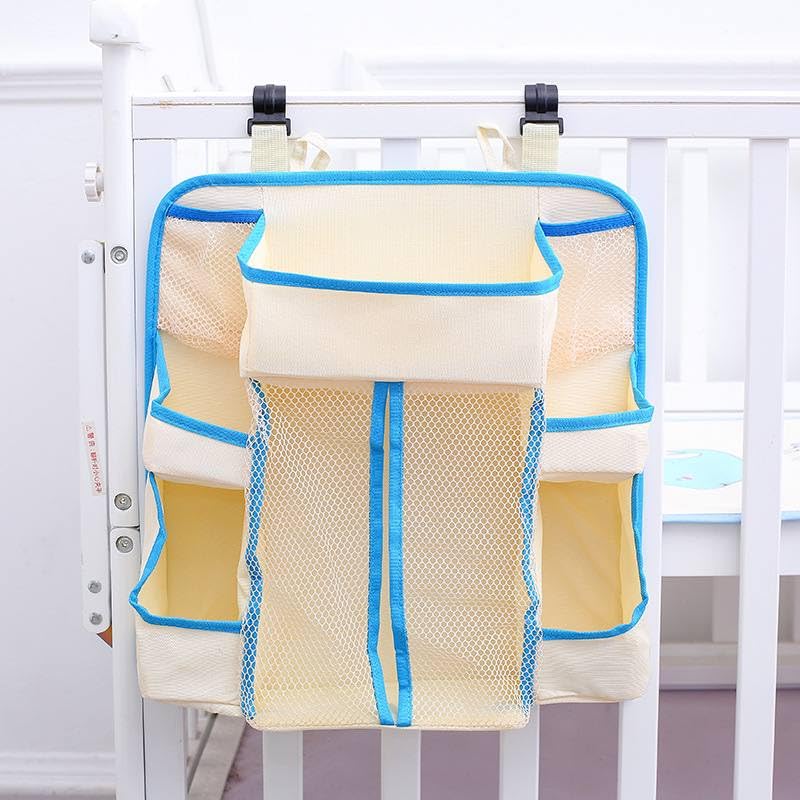 Generic - منظم مستلزمات الأطفال المعلق، بتصميم معلق، باللون البيج، مصنوع من البوليستر، مقاوم للانزلاق، يثبت على سرير الطفل