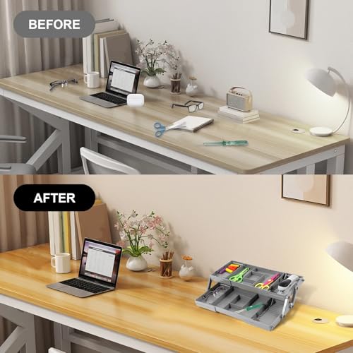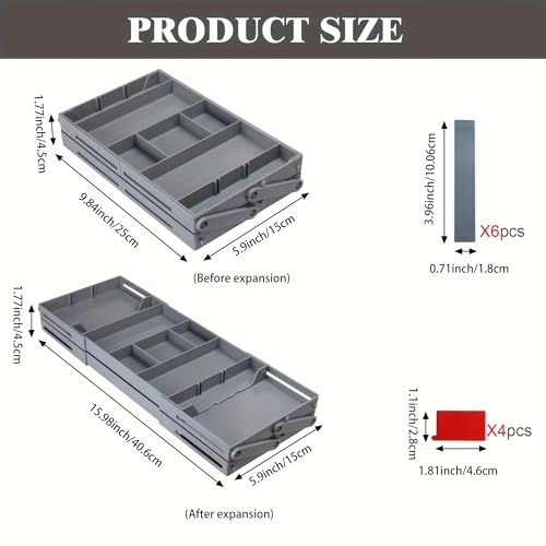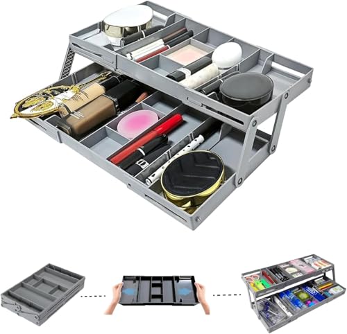 Generic - منظم أدراج، منظم مكياج ومنظم اكسسوارات ومنظم أدوات المكتب، تصميم متين وقابل للتوسيع، رمادي