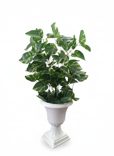 Generic - نبات زينة صناعي بوعاء رخامي أنيق، أوراق بوتس خضراء بواقعية عالية للديكور الداخلي