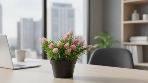 Generic - نبته صناعيه صغيره مع اصيص اسود لتزيين المنزل و المكتب