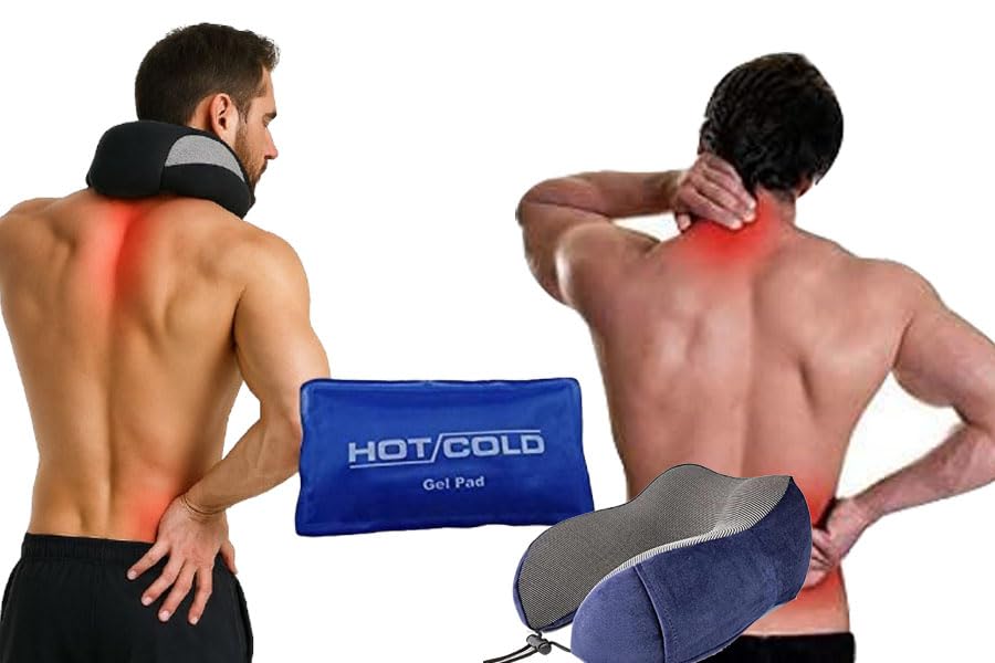 - وسادة سفر مصنوعة من مادة الميموري فوم بتكنولوجيا تصنيع أمريكية مزدوجة وغلاف خارجي من القطيفة الناعمة قابلة للغسل في الغسالة لسهولة التنظيف + عبوة جل ساخنة وباردة من ستار سيف.