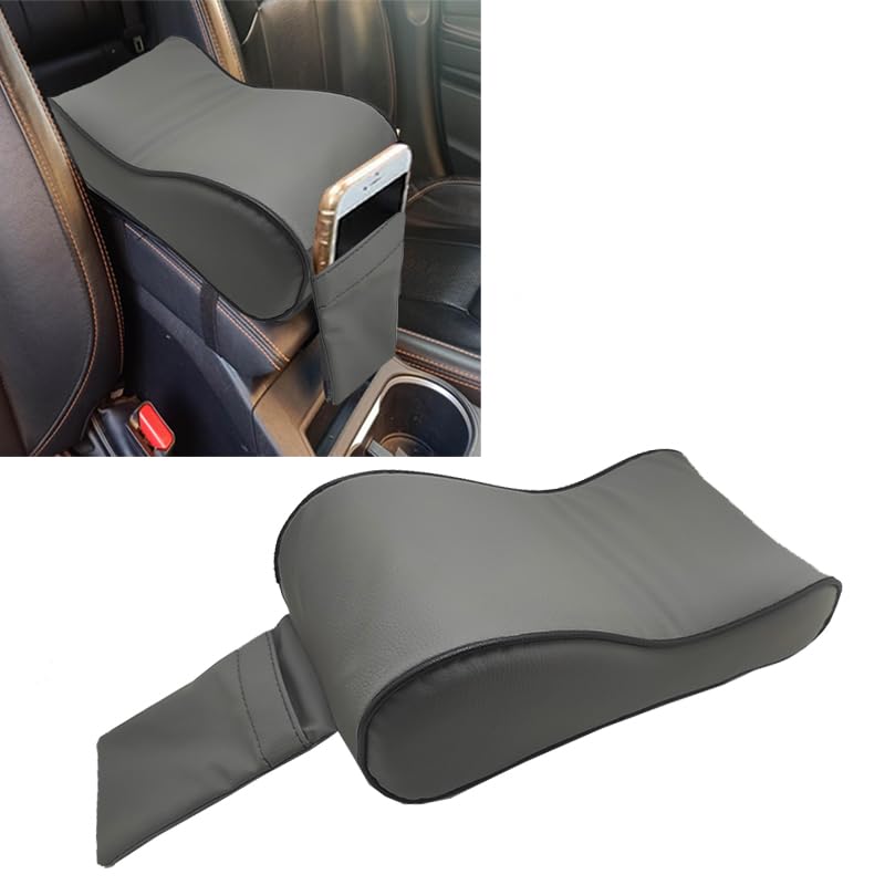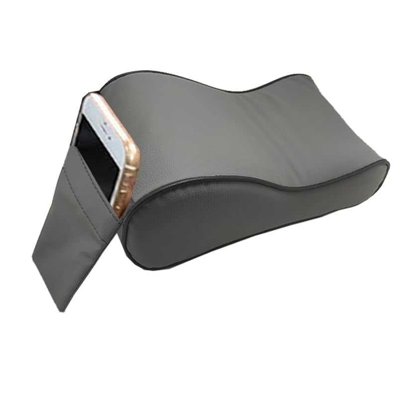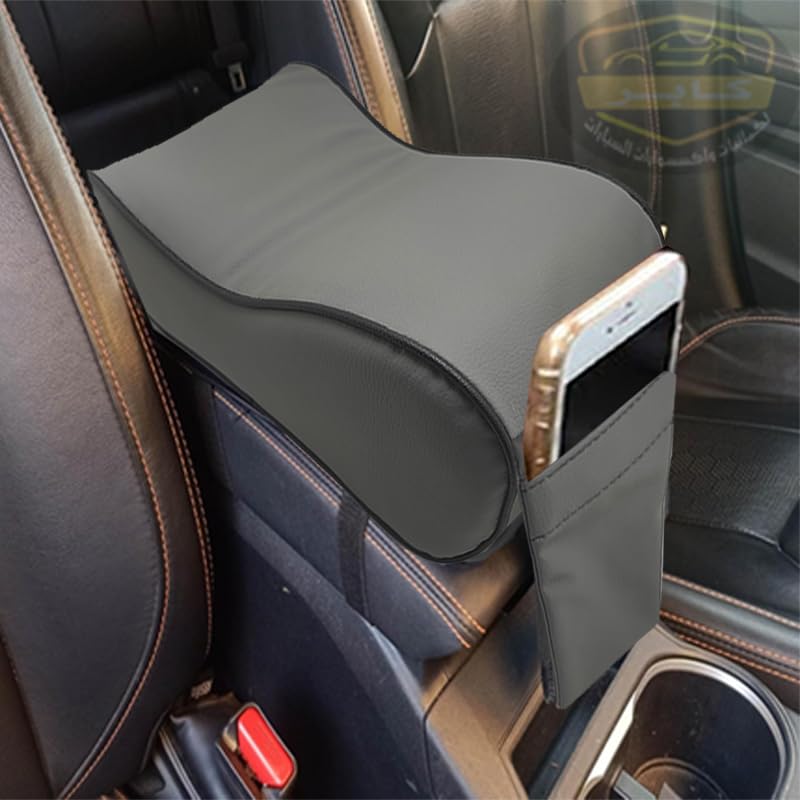 Generic - وسادة مسند ذراع للسيارة مصنوعة من الجلد عالى الجودة وجيب للموبايل والمتعلقات ، مريحة بتصميم احترافي ملحقات السيارات الاساسية (رمادى خط اسود)