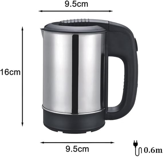 Generic - غلاية كهربائية سعة 0.5 لتر، مصنوعة من الفولاذ المقاوم للصدأ، حجم صغير مناسب للسفر، ارتفاع 16 سم