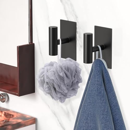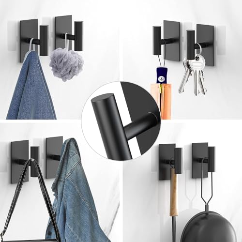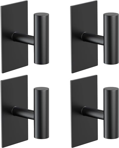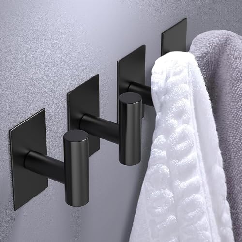 0TO1 TECH - خطافات مناشف لاصقة شديدة التحمل لمنشفة الحمام شماعات على الحائط من الستانلس ستيل 304 لتعليق المناشف والمعاطف والمفاتيح والمطبخ المنزلي 4 عبوات من0TO1 تك أسود