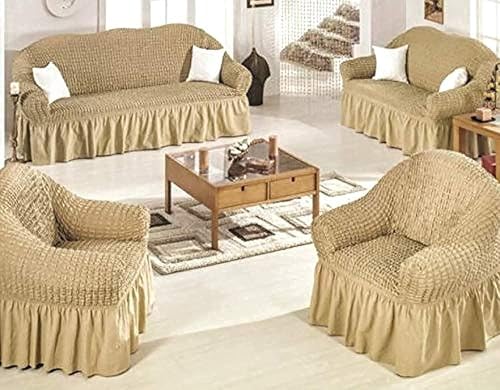 Generic - طقم غطاء كنب أنتريه ، موديل تركي، أربعة قطع، مكون من 1 غطاء كنبه ثلاث مقاعد و 1 غطاء كنبه مقعدين و 2 كرسي، لون دهبي