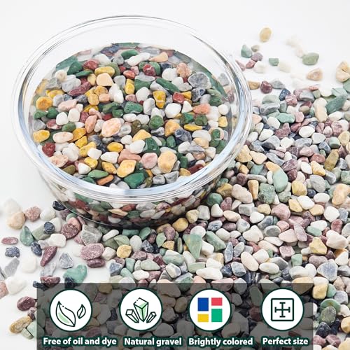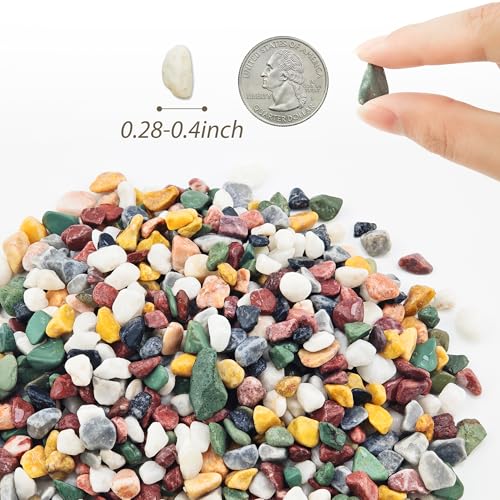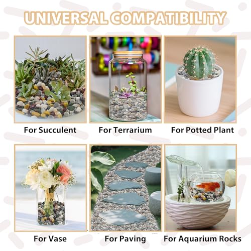 - حجم العبوة: 5.5 باوند من الحصى الملونة لكل كيس، مقاس حوالي 6-9 ملم، الحجم المثالي مثالي لتزيين النباتات العصارية والصبار والزراعة المائية وغيرها من النباتات الصغيرة في أصيص