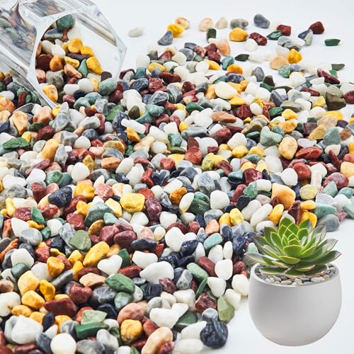 Kaiyuan Dynasty - حصى بالوان مختلطة 5.5 باوند للنباتات الداخلية، صخور مزخرفة 6-9 ملم للنباتات العصارية والصبار، حصى مصقولة طبيعية للمزهريات والزراعة المائية والبونساي وحوض السمك وحوض السمك