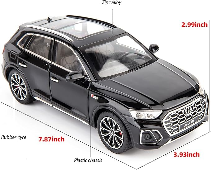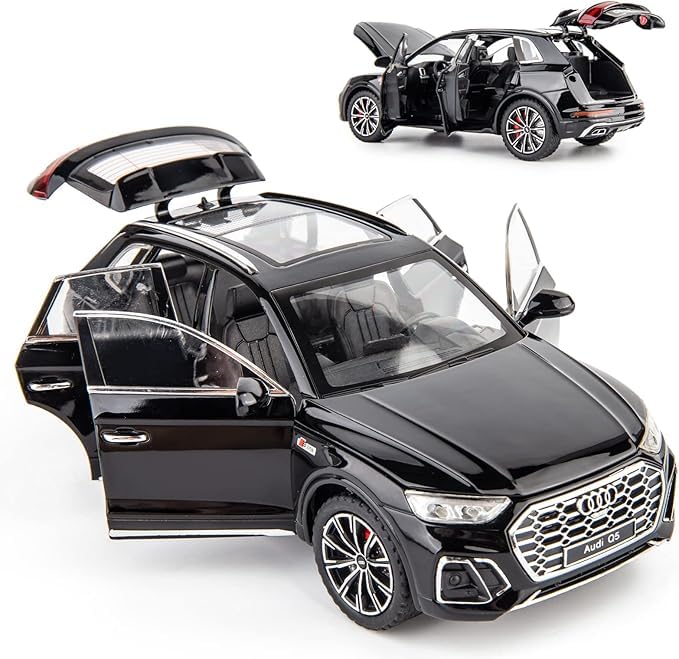 Generic - لعبة سيارة اودي Q5 بدفع رباعي بمقياس 1/24 مصنوعة من خليط الزنك المعدني مزودة بالصوت والضوء للأطفال والبالغين (أسود)