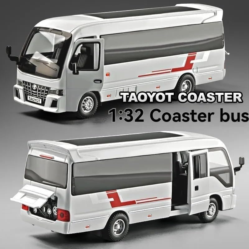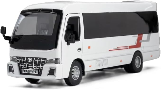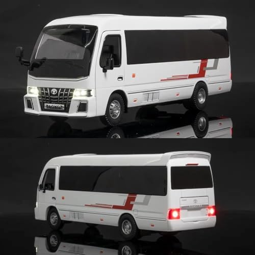 Generic - نموذج سيارة تويو تا كوستر بمقياس 1.32، نموذج حصري من خليط معدني قابل للسحب للخلف مع ضوء، لعبة صغيرة للاطفال، نموذج معدني مع صوت وضوء. (ابيض)
