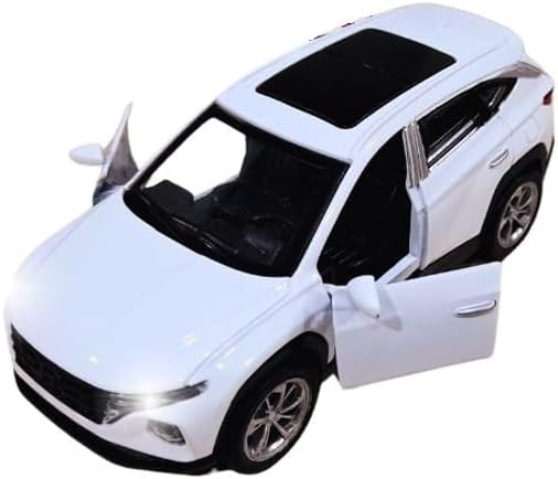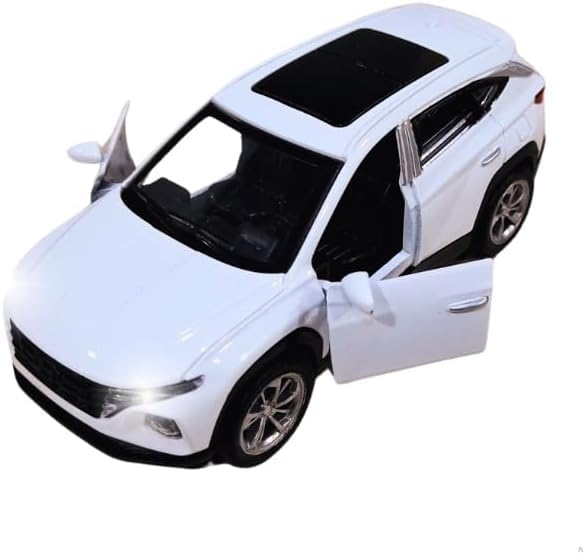 Generic - نموذج سيارة هونداي توكسون اس يو في مصبوبة بمقياس 1:36 مع أضواء وصوت، نموذج سيارة رياضية من خليط معدني مصبوب للأطفال بأبواب أمامية مفتوحة، أبيض
