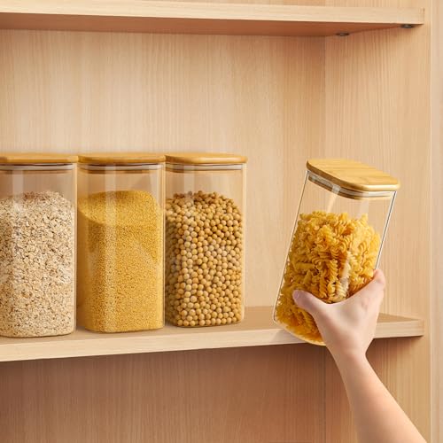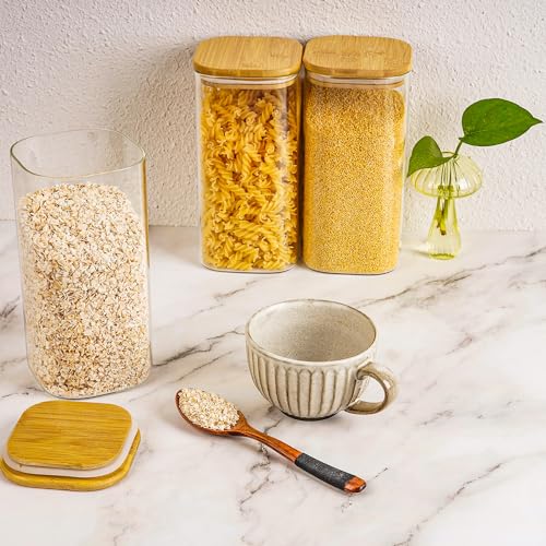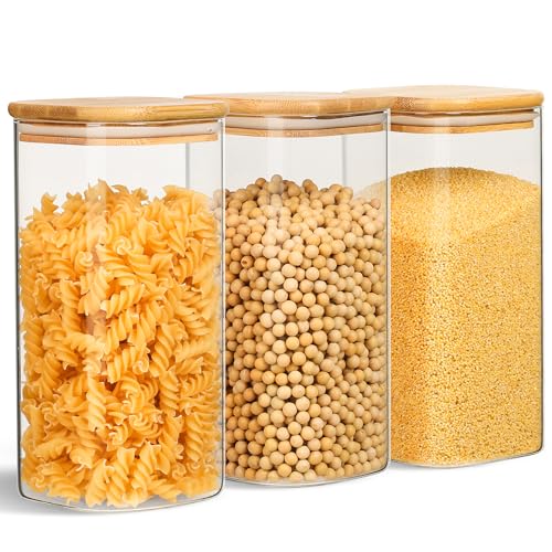 DUNSOO - برطمان تخزين بغطاء سعة 1.5 لتر، برطمانات تخزين زجاجية مع غطاء محكم الإغلاق، ارتفاع 20 سم، مناسبة للمكرونة والدقيق والأرز والفواكه، 3 قطع