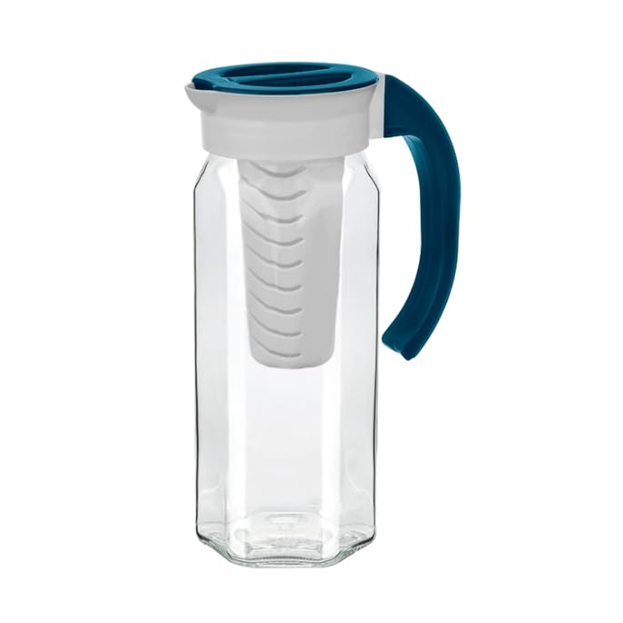 Generic - ابريق زجاجي سعة 1.5 لتر مع مصفاة قابلة للازالة - ابريق زجاجي شفاف للشاي والماء المشبع بالفواكه والمشروبات - انيق ومتين (ازرق)