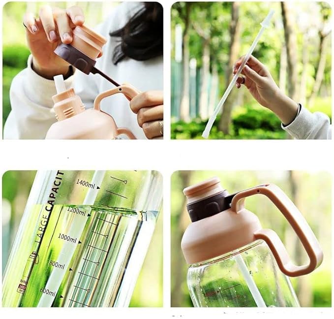 - زجاجة المياه الكبيرة مع شفاطة وسلم مصنوعة من بلاستيك آمن غذائيًا عالي الجودة، بدون مواد ضارة وبدون رائحة غريبة ومناسبة للشرب اليومي أو المشي لمسافات طويلة والنزهات والسفر والمشي لمسافات طويلة.