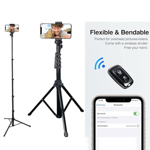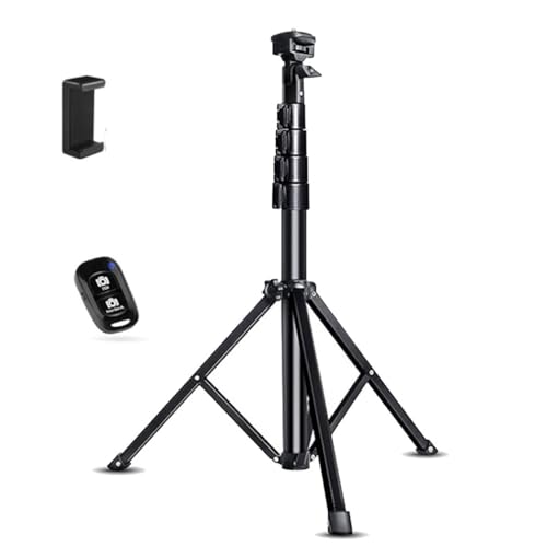 Aotecno - عصا سيلفي ثلاثية القوائم بطول 1.55 م، عصا سيلفي تلسكوبية من الألومنيوم، حامل موبايل للتصوير قابل للتعديل، جهاز تحكم عن بعد ببلوتوث، يعمل مع جميع الموبايلات الذكية من خليط الألومنيوم المعدني، أسود