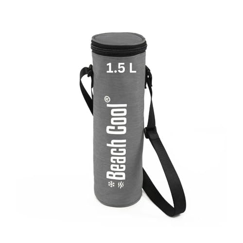 Generic - شنطة تبريد معزولة سعة 1.5 لتر - شنطة كبيرة حرارية مانعة للتسرب للزجاجات سعة 1.5 لتر و4 علب - للشاطئ والنزهات والتخييم مع مقابض معززة واقٍ من الشمس - خفيفة الوزن ومتينة (لون رمادي)