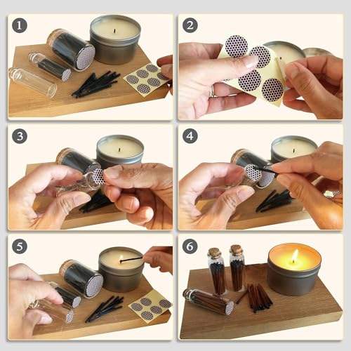 - تشتعل بسهولة وتدوم طويلًا - بسبب متانة وكمية المواد المستخدمة على الملصق، تشتعل أعواد الثقاب بسهولة عند حكّها بسطح الإشعال، مقاسها (2.5 سم لكلٍ من) ملصقات إشعال أعواد الثقاب. تعمل بشكل أفضل عند وضعها على سطح صلب.