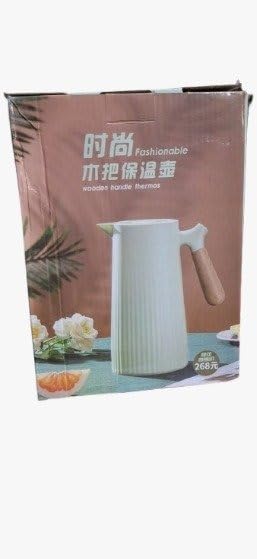 Generic - ترمس حراري سعة 1 لتر للقهوة والشاي بيد خشبية ، يحافظ على الحرارة ، موزع للمشروبات الساخنة والباردة مع مقبض خشبي شكل مضلع معا غطاء قابل للف.