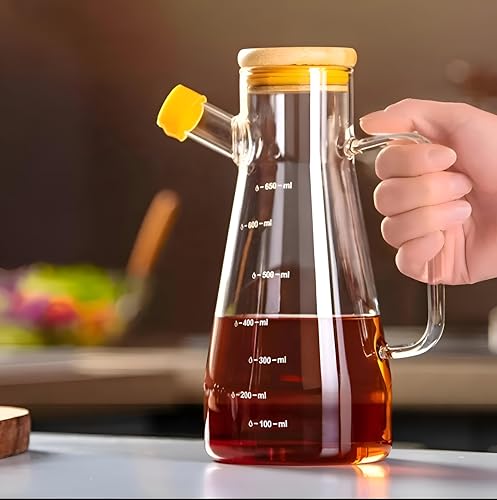 Generic - كوب زجاجي سعة 1 لتر - قابل لاعادة الملء بمواد امنة، سعة 1 لتر، زجاج شفاف مع غطاء خشبي، سيليكون مقاوم للتسرب، مناسب للرياضة والمطبخ