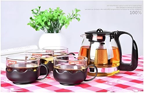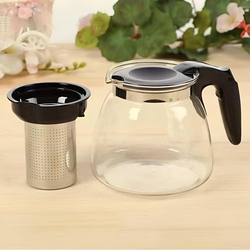 Generic - ابريق زجاجي سعة 1 لتر - يتميز بمصفاة شاي من الستانلس ستيل وتصميم شفاف ومقبض مقاوم للحرارة وقاعدة بلاستيكية متينة، مثالي لتقديم الشاي الى اربعة اشخاص يوميًا.