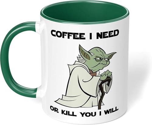 Al Adham - مج بمقبض ونمط حرب النجوم يودا مع اقتباس فكاهي لاحتساء القهوة والشاي والكرك واللبن والكاكاو وأي مشروب ساخن أو بارد تفضله، أخضر من الداخل