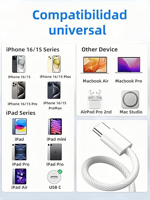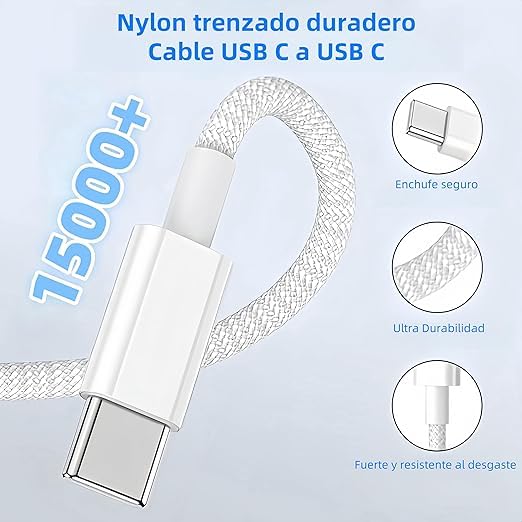 Generic - كابل شحن سريع ونقل بيانات نوع C ومزامنة البيانات، قوي ومتين PD طول 6ft كابل بمنفذ USB من النوع سي إلى سي بتصميم مضفر للشحن السريع، (بطول 2 متر) 1 قطع
