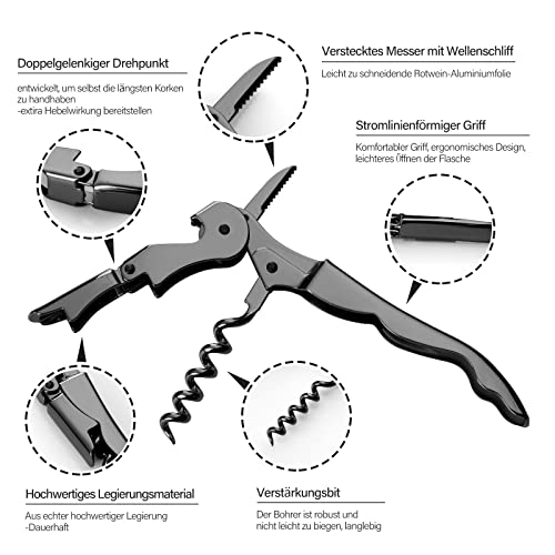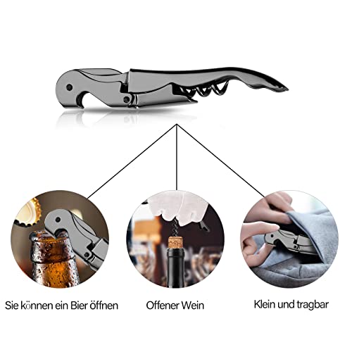 - مفتاح فتح الزجاجات الخاص بالنادل مصنوع من الستانلس ستيل 420 مع مقبض من الستيل الكربوني المتين تحتوي على رافعة تساعدك على سحب الفلين من الزجاجة دون مجهود. تتميز بقطاعة ورق قصدير مدمجة وفتاحة غطاء الزجاجة.