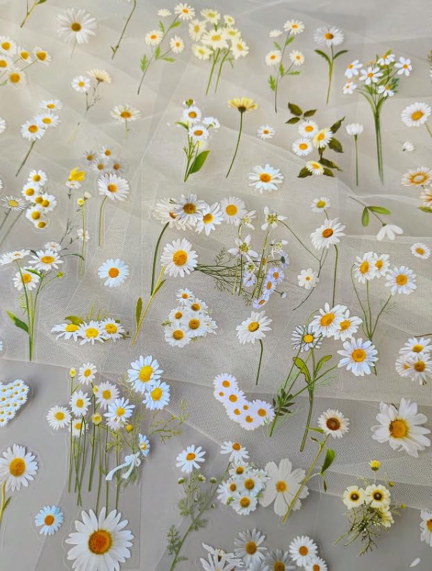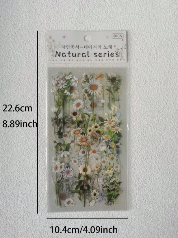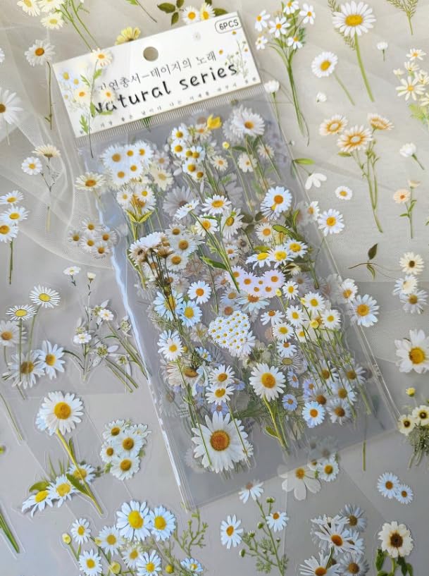 Generic - عبوة واحدة من 6 ورقات ملصقات نباتات زهرة الاقحوان الطازجة للديكور بنفسك، لوازم المدرسة، العودة الى المدرسة