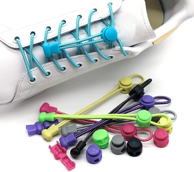 Generic - زوج من أربطة أحذية مرنة بدون رباط ، حبل مطاطي 100 سم، مشابك بلاستيكية، مزودة بقفل لأحذية الجري والأحذية الرياضية