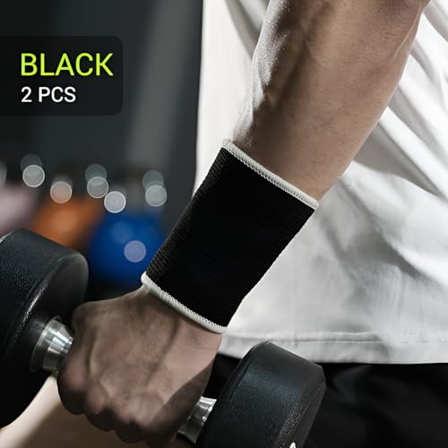 Plan A - مشد معصم مرن لدعم وحماية المعصم أثناء التمرين والرياضات المختلفة، زوج واحد، مقاوم للكدمات، مناسب لكرة السلة والطائرة، يقلل من آلام التهاب المفاصل (أسود)
