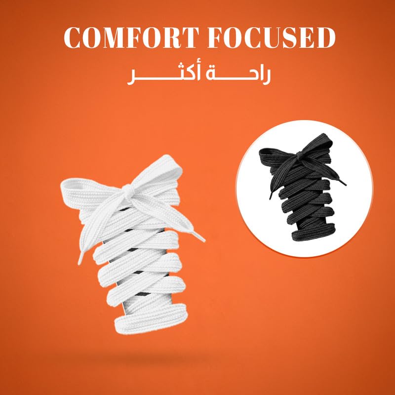 Generic - أربطة أحذية رياضية مسطحة، أبيض وأسود، قماش قطني مجدول، 120 سم × 1.4 سم، تصميم متعرج، مناسبة للأحذية الرياضية والكاجوال، زوج واحد