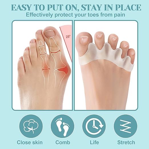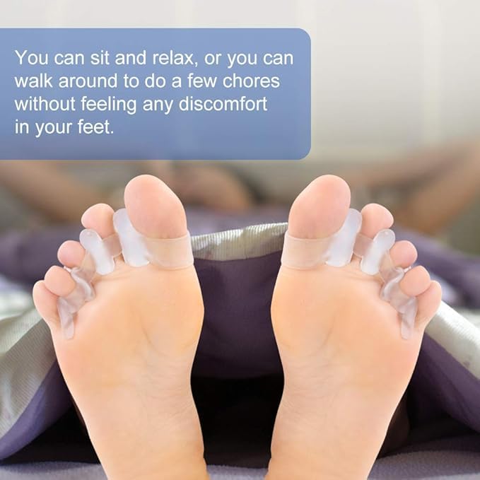 - فواصل أصابع القدم لتخفيف الألم: يتم استخدام كل فاصل أصابع القدم لتخفيف آلام قدمك، وتبدأ أصابع قدميك في الشفاء ومنع مشاكل القدم المختلفة، مثل الالتهابات والتهاب اللفافة الأخمصية والهالوس وأصابع المطرقة، ويجب وضع المساحات بالقرب من منحنى أصابع القدم.