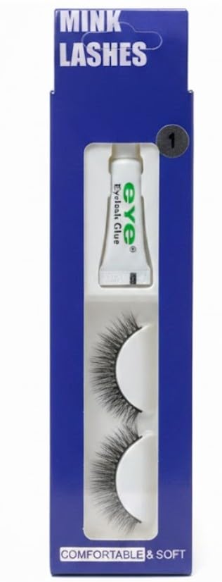 Generic - رموش اصطناعية ناعمة كثيفة بنمط طبيعي مصنوعة يدويًا تتضمن صمغ رموش وتدوم طويلًا وتمنح مظهر رموش دراماتيكي وسهلة الاستخدام (1 زوج رموش + صمغ)، N1