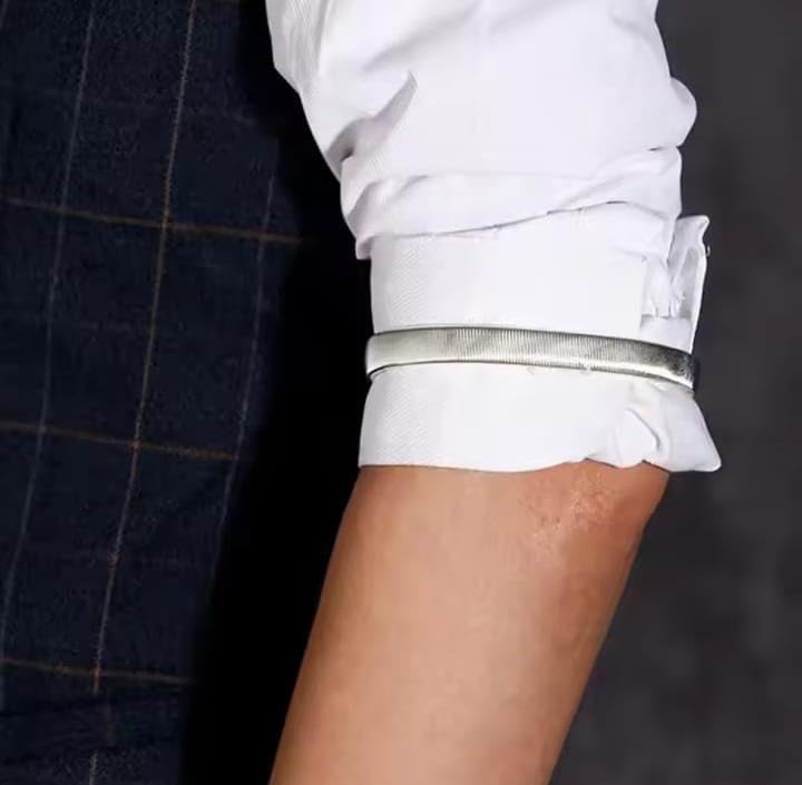 Generic - زوج واحد من حوامل اكمام القميص - اساور ذراع معدنية مضادة للانزلاق - اساور ذراع مرنة قابلة للتوسيع وقابلة للتعديل للرجال - ذهبي