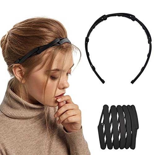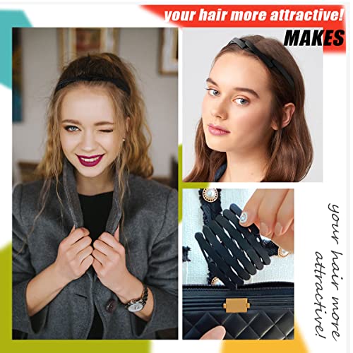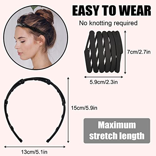 AEGYPIUS - طوق رأس باسنان مشط بلاستيك سادة قابل للسحب للنساء والبنات، طوق شعر للجيب بسوستة مموجة قابلة للطي والتعديل ومقاوم للانزلاق، اكسسوار شعر عصري، قطعة واحدة (اسود)