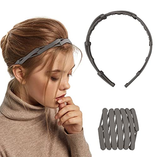 AEGYPIUS - طوق رأس باسنان مشط بلاستيك سادة قابل للسحب للنساء والبنات، طوق شعر للجيب بسوستة مموجة قابلة للطي والتعديل ومقاوم للانزلاق، اكسسوار شعر عصري، قطعة واحدة (بني)