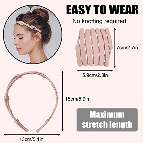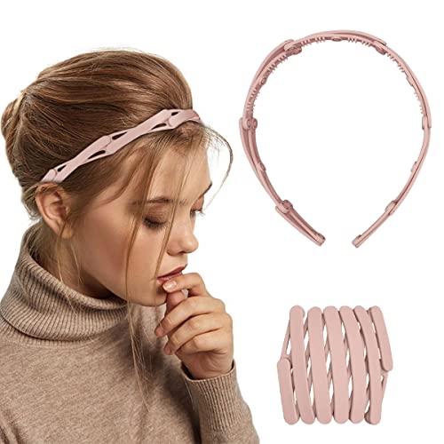 AEGYPIUS - طوق رأس باسنان مشط بلاستيك سادة قابل للسحب للنساء والبنات، طوق شعر للجيب بسوستة مموجة قابلة للطي والتعديل ومقاوم للانزلاق، اكسسوار شعر عصري، قطعة واحدة (بينك)