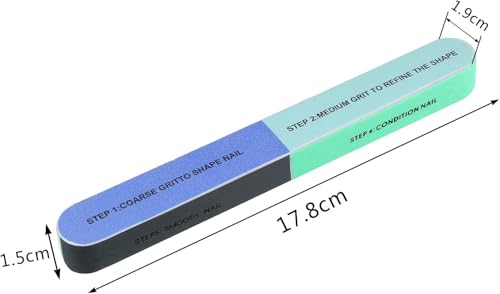 - مبارد أظافر على الوجهين بدرجة خشونة 100/180: تحتوي كل عبوة على مبرد أظافر واحد على الوجهين، مع وجه واحد يتميز بملمس خشن بدرجة خشونة 100، مثالي للأظافر الاكريليك والسميكة، بينما يتميز الوجه الآخر بملمس ناعم بدرجة نعومة 180، مثالي لبرد سطح الأظافر أو تنعيم الأظافر الطبيعية.