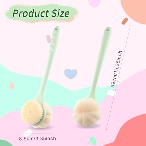 - WITH LONG HANDLE - The back shower scrubber is made of quality material with long handle which is measured approx. 39*8.5cm/15.35*3.35inch. Its long handle makes it easy to use whether wet or dry used, provides a comfortable grip.