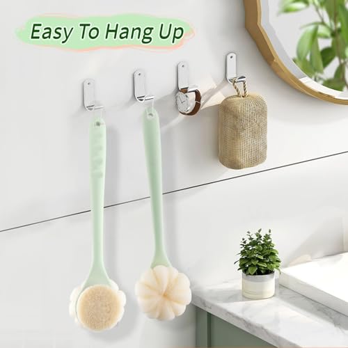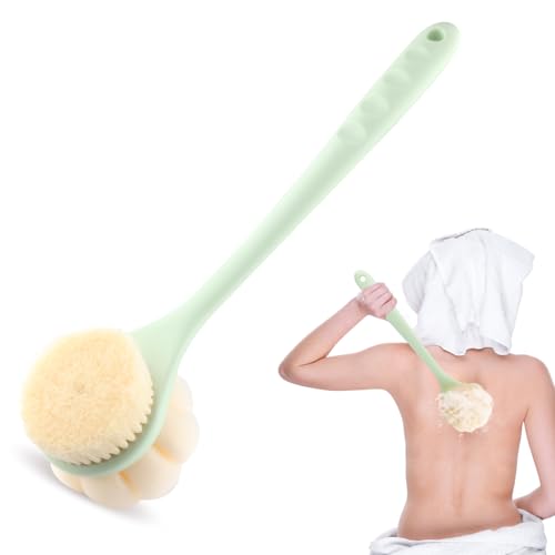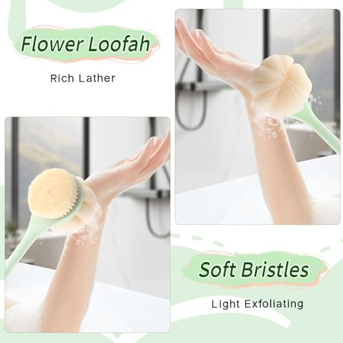 Nozefy - 1 Pcs Bath Sponge Back Brush Double Sided Shower Back Scrubber Bath Mesh Sponge with Long Handle Soft Bristles and Loofah for Skin Exfoliating Massage - Green