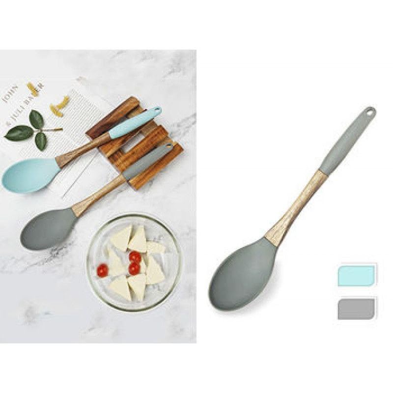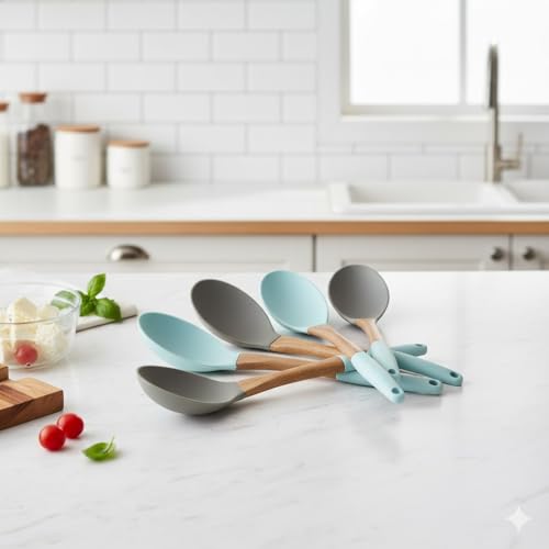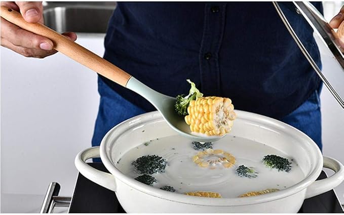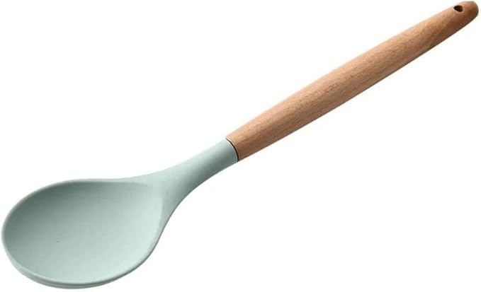 Generic - ملعقة تقديم وطهي من السيليكون بمقبض خشبي – مقاومة للحرارة والالتصاق للتقليب والغرف والخلط، قطعة واحدة (كبيرة)