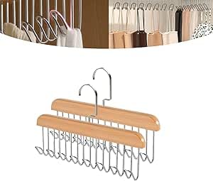 Generic - طقم شماعات خشبية بـ8 خطافات قابلة للتعديل لتعليق الأحزمة والرباطات والملابس الداخلية والسكارفات مع خطافات قابلة للطي لتنظيم دولاب الملابس للرجال والنساء، قطعة واحدة