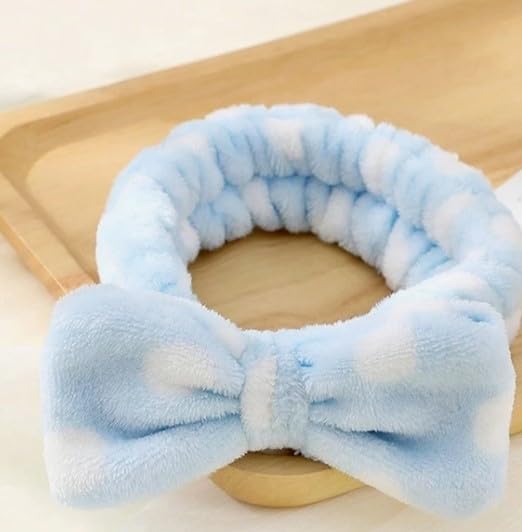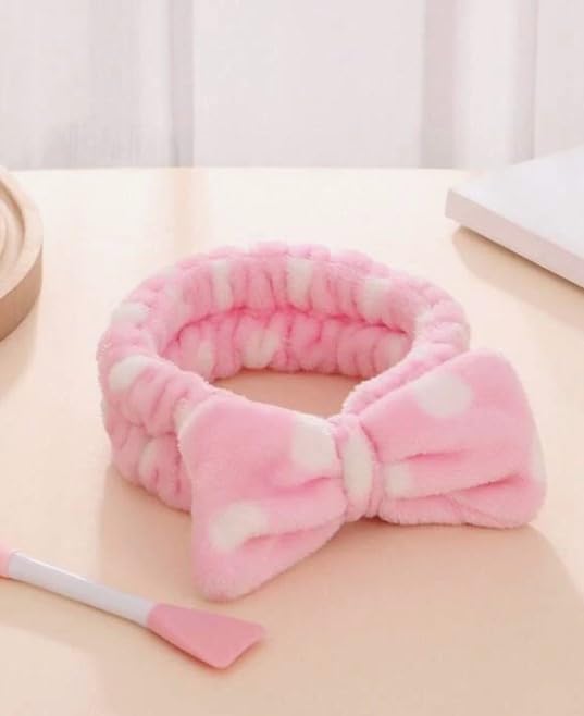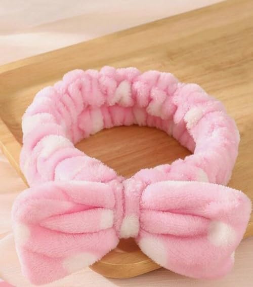 Generic - ربطة شعر بلون عشوائي مع نقاط منقطة مزينة بعقدة فراشة، لطيفة للاستحمام، قطعة واحدة للنساء