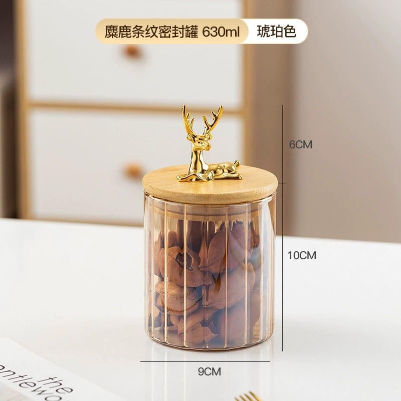 Generic - برطمان زجاجي كهرماني محكم الإغلاق متعدد الأغراض مع غطاء للشاي وقشر اليوسفي، برطمان تخزين حبوب متنوعة من قطعة واحدة - سعة 630 مل