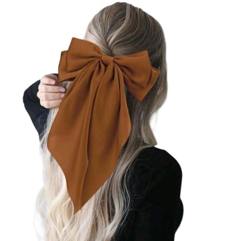 Generic - مشابك شعر بفيونكة كبيرة وذيل طويل من الساتان الحريري الناعم بذيل طويل عدد قطعة واحده , دبابيس شعر معدنية بتصميم فيونكة فرنسي، اكسسوارات حفلات للنساء والبنات (بني)