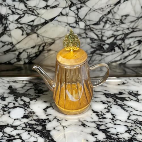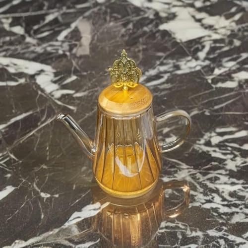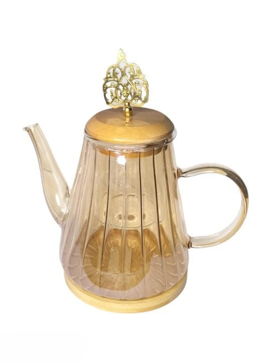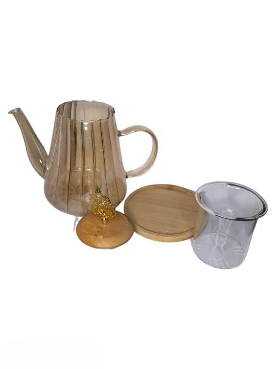 Generic - شفشق ماء زجاجي بغطاء خشبي ومصفاة زجاجية، غلاية ماء زجاجية، براد شاي من زجاج البوروسيليكات قابل للتسخين على الموقد، براد شاي زجاجي، للشاي والقهوة، قطعة واحدة (1100 مل)