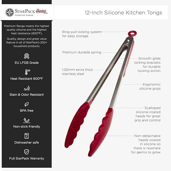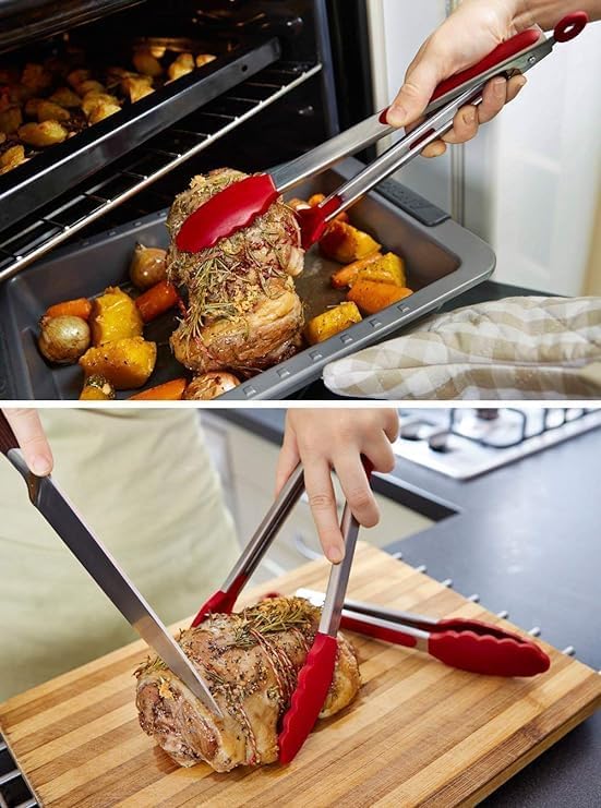 Generic - مساكات طعام للمطبخ من مادة الستانلس ستيل والسيليكون للشواء والطبخ والسلطة، اواني تقديم الطعام، متعدد الالوان - قطعة واحدة